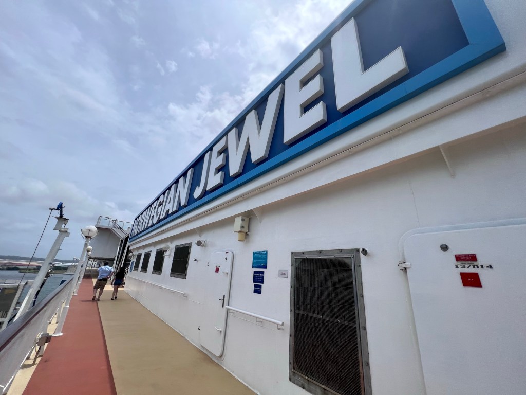 Since we were the first sail for the Norwegian Jewel in two years due to the COVID-19 endemic, our escort took us directly to our room. Being able to go to your room immediately upon boarding is not typical for any cruise ship or line because the room stewards are still having to clean the rooms from the cruise guests that disembarked that morning. Our room was spectacular! However, I am not going to go into detail about that here, but I have written a blog post about the room specifics here.
